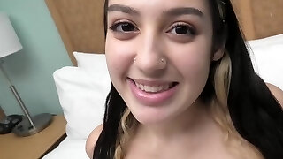 First-timer pounding on the bed with natural boobs GF Sarah-Jayne