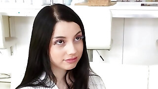 Jaw-dropping brunette girl Katy Visotskaja lets a cock in for the first time