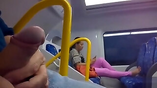 Exhibitionist dude plays with his dinky in train