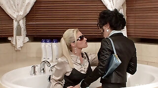 Blonde and the dark-haired babe having a excellent time in the bath