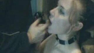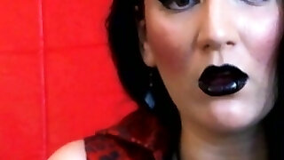 Whorey Goth FemDom Makes You Suck Her Cock While You Stroke Your Dick