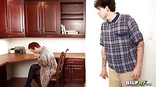 Bbw with big mounds gave a blowjob to her stepson and framed her big ass for anal
