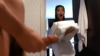 Casual threesome sex with two maids in hotel Emily Willis and her Gf