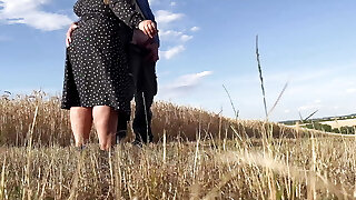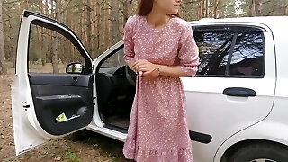 Plump MILF in short dress gets jizm outdoors after joint masturbation