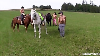 Pretty Teen Ranch Girl in Jeans Skirt &_ Boots Riding Ass to Throat. Downhome Country &_ Western Outdoor Anal