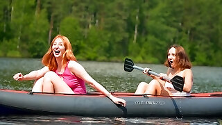 Dirty minded stud attacked new tight kitty right while camping in forest