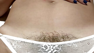 Wife's hairy pussy picture session ends up on a onanism show, closeup fingering hairy cunt until gets soaking wet and jizz