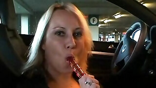 nippleringlover - horny milf playing with pierced fuckbox and huge pierced nipples in the car