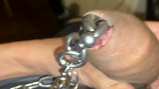 This is Close Up Extreme. Main frontal view. Latex gloves, detailled peehole and cumshot.