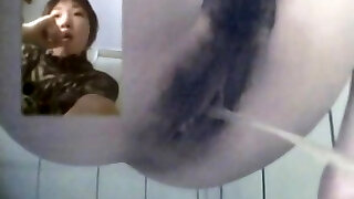 Chinese babes with hairy pussies releasing golden showers