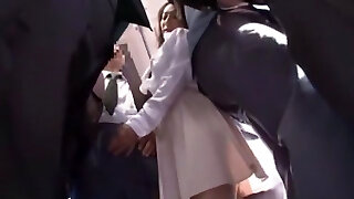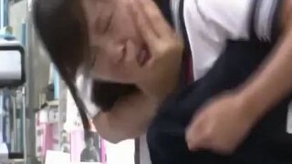 Sweet, Janaese girls are getting harassed in the bus, but it looks like they like it