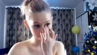 Young 18 year aged girl blogger with a moist pussy, slender student