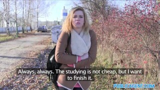 Public Agent Hot Lost towheaded sucks stranger’s jizz-shotgun for cash