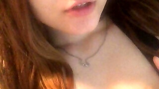 Red head River Fox is eating big jugs covered in sperm after warm blowjob session
