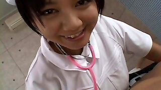 Asian nurse is sucking and titty fucking the prick