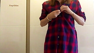 Bro changed his mind when younger stepsis changes college uniform in front of him