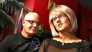 blonde granny with glasses gets fucked on a stool