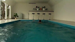 Hungarian milf with glasses by pool