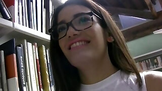 Busty college girl in glasses Alex Chance gets poked well