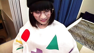 Four eyed hottie loves playing with her yam-sized yummy tits