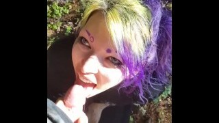 Submissive Goth girl face penetrated by boyfriend in the forest POV