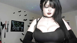 Teenage Goth Bbw plays with her big nipples for you