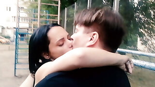 Kissing HD Tiny teenage and big-chested lesbian all over each other kissing deeply