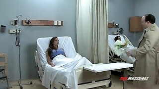 Quite leggy bootyful dark haired MILF Rachel Evans lets nerd eat her cunt