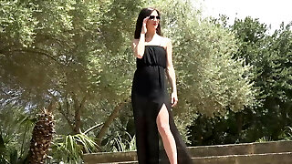 Naughty brunette nubile babe Leyla pissing outdoors
