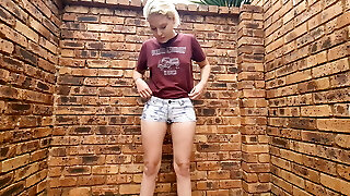 Compilation of hot blonde peeing herself outside in different outfits