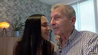 Sexy teenage deepthroat blowjob and swallow to grandpa