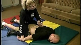 Intense Female with Natural mounds fucks up a guy in wrestling humiliates him